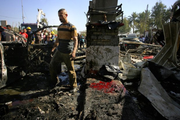 The bomber, who was on foot, detonated his device at one of the busy entrances of the Shiite district of Kadhimiyah, killing at least 10 civilians and four policemen, a police officer said. At least 31 other people were wounded, he added.
