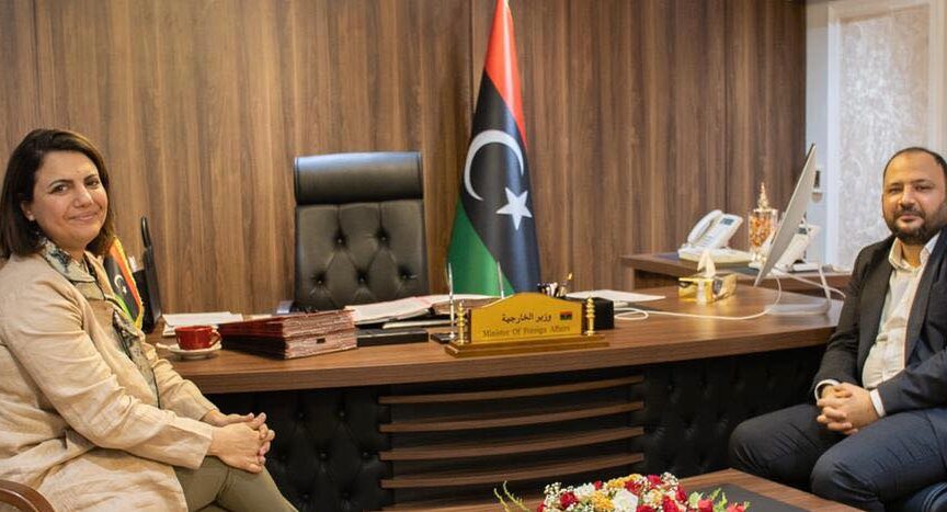 The Minister for Foreign Affairs and International Cooperation, Najla Al-Mangoush, met with the Minister for Youth, Fethullah Al-Zani, at the Ministry’s offices in Tripoli.