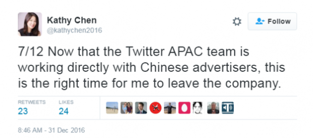 China Twitter’s boss Kathy Chen quits after 7 months in post
