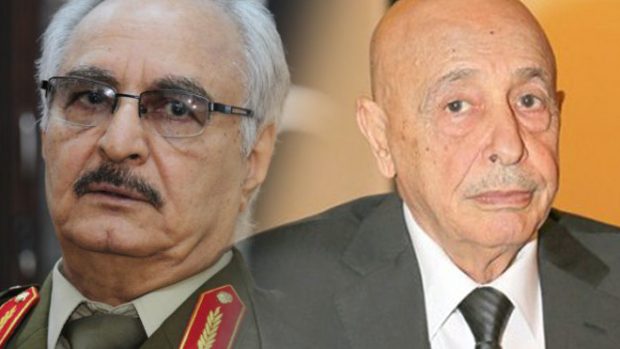 The military commander of the self-styled Libyan National Army and Operation Dignity in eastern Libya, Khalifa Haftar, and the Speaker of the Tobruk-based House of