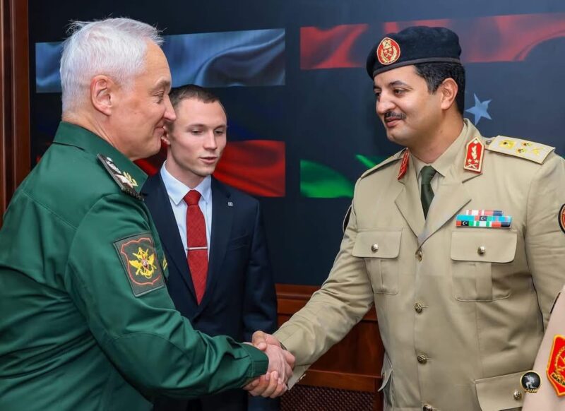 Libya’s Chief of General Staff of the Armed Forces, Colonel General Khaled Haftar, held talks in Moscow with Russian Defense Minister Andrey Belousov during an official visit aimed at strengthening bilateral defense ties.