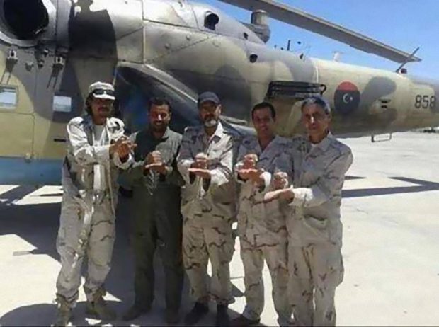 In Pictures: Dignity Operation (Karama) military pilots pose with a teasing hand gesture before they bomb Derna