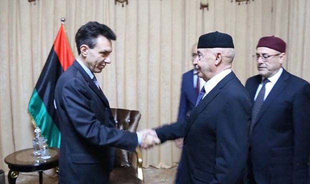 The Italian ambassador in Libya, Giuseppe Perrone, has arrived in Tobruk to meet with the House of Representatives’ Speaker, Aguilah Saleh, to discuss the current political affairs in the country.