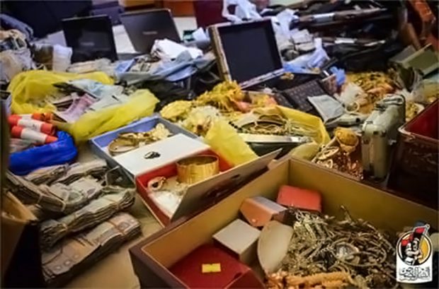 The Libyan forces of Al-Bunyan Al-Marsous found large amounts of gold, money, Tunisian currency, phone airtime cards and weapons at the Hisbah headquarters (Court) of IS terrorists in Sirte.