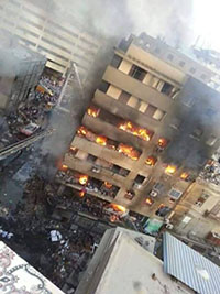 At least 74 people were injured after a massive fire engulfed a hotel and several nearby buildings in a busy low-price commercial area in downtown Cairo early Monday, according to Egypt’s ambulance services.
