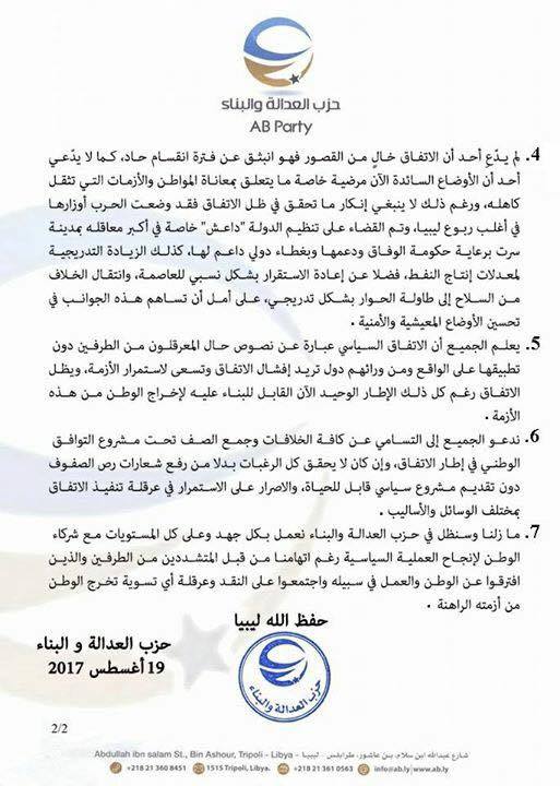 It also added that the mufti’s statement about the pro-LPA figures and parties are an invitation to “shed the blood” of the figures who take the LPA’s side and the side of the Government of National Accord, according to the statement issued by the party on Saturday.
