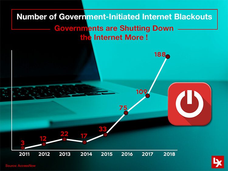 In 2018 that number jumped to 188 instances, accounts for an over 6,000 percent increase in the number of government-initiated internet blackouts.