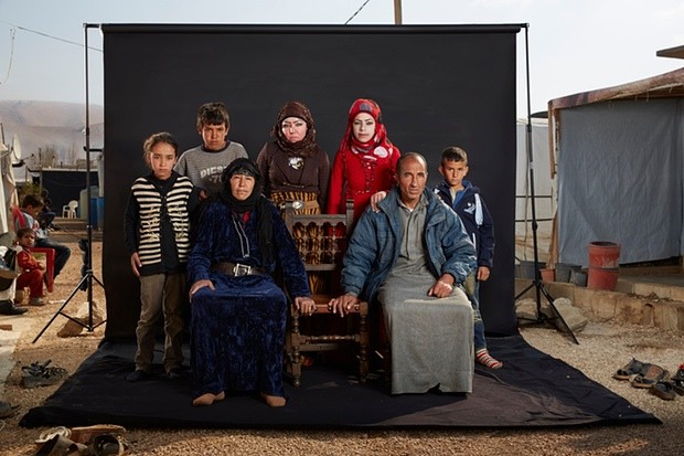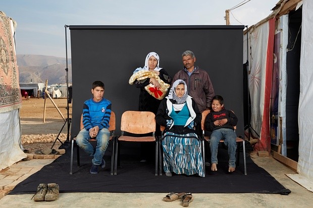 Portraits of Syrian refugee families with an empty place for “missing dear ones”