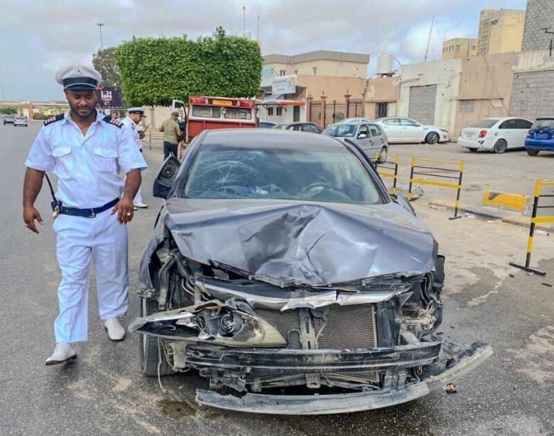 Tripoli Security Directorate said the collision occurred when a driver, travelling at high speed, lost control of their vehicle and veered into oncoming traffic. The car then collided with five other vehicles which were parked at the side of the road.