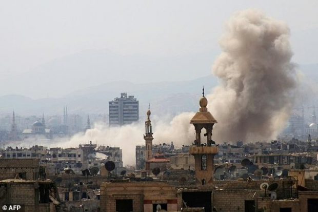 On Monday, warplanes carried out dozens of strikes on nearby rebel-held areas.
