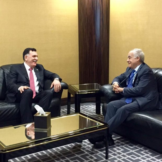 The United Nations delegate to Libya and the Head of its support mission Ghassan Salame has held a discussion meeting with the Head of the Presidential Council of the Libyan Government of National Accord (GNA) Fayez Al-Serraj in New York.