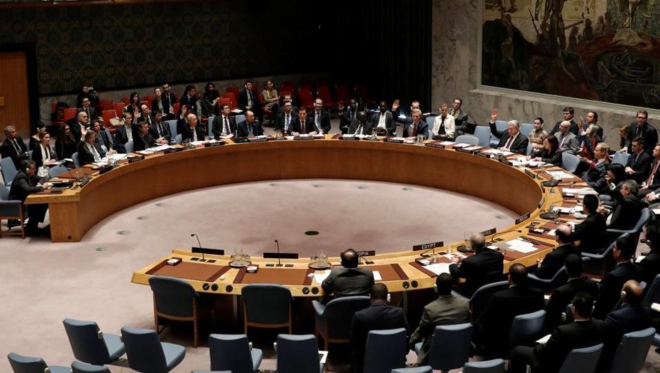 The United Nations Security Council votes on a resolution to ban the supply of helicopters to the Syrian government and to blacklist Syrian military