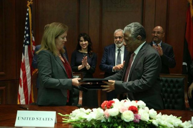 U.S. Charge d’Affaires to Libya, Stephanie Williams, and Libyan Foreign Ministry’s Under Secretary of Political Affairs, Lutfi Almughrabi, on Friday signed documents on security cooperation, according to the Libyan Foreign Ministry.