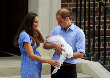 It was a fairytale photo-op for a real life prince and princess: a beautiful, healthy baby, a doting, proud father, and a glowing, serene mother. But wait! Look closely. When Kate passes the swaddled heir to her charming William, she reveals a real-life new mom belly. Round as a six month pregnancy. Clear as day in the clingy, form-fitting dress she chose to wear.